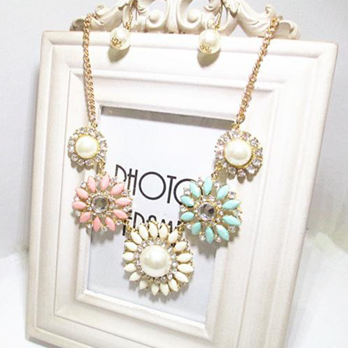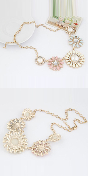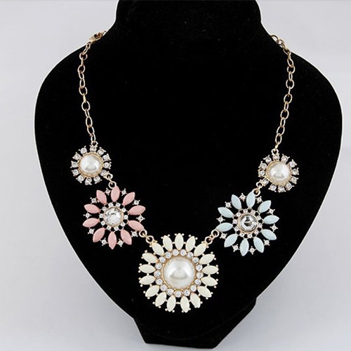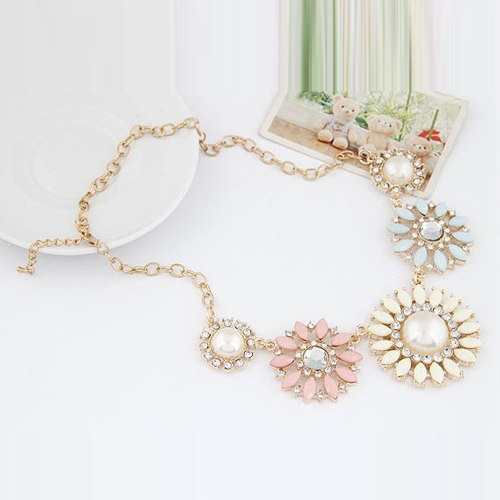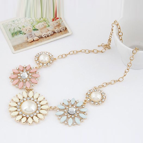 Fashion Crystal Rhinestone Colorful Daisy Pendant Necklace