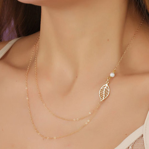 Fashion Gold-tone Tree Leaf Pendant Dual-layer Necklace