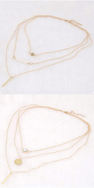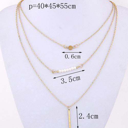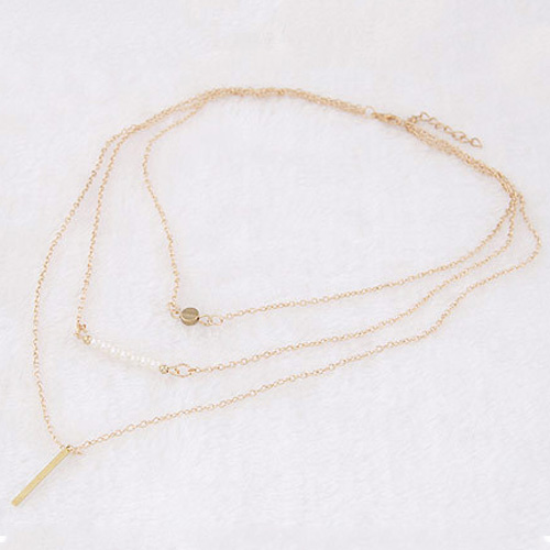 Fashion Pearl Wishing Stick Pendant Multi-layer Necklace