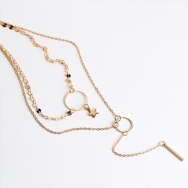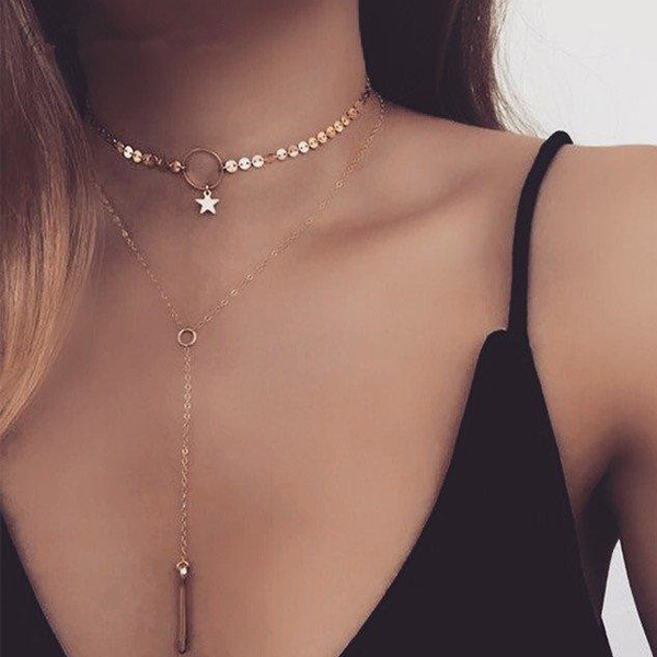 Double-layer style,designed with a pentagram and long tassel pendant,chic and stylish. An ideal addition for a