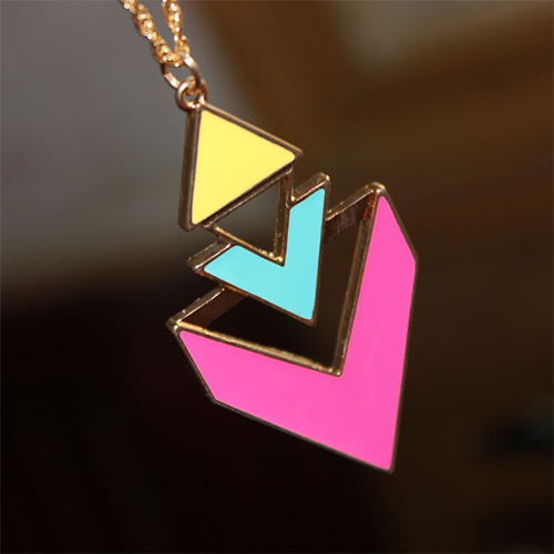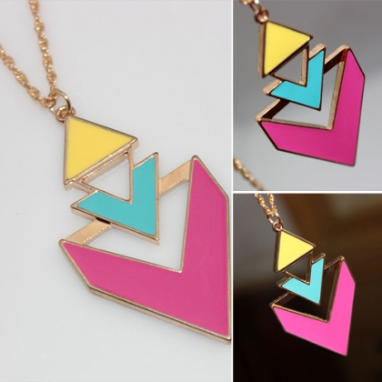 Fashion Punk Candy Contrast Color Triangle Shaped Pendant Necklace