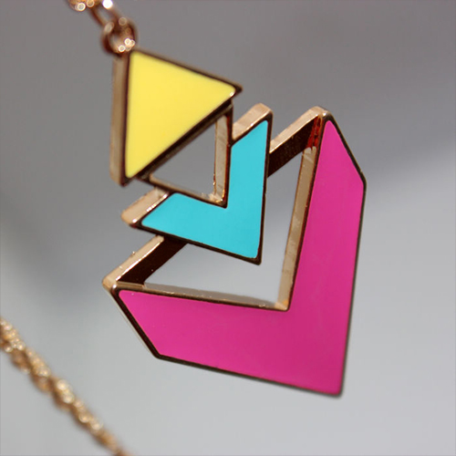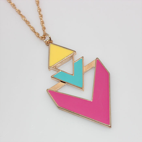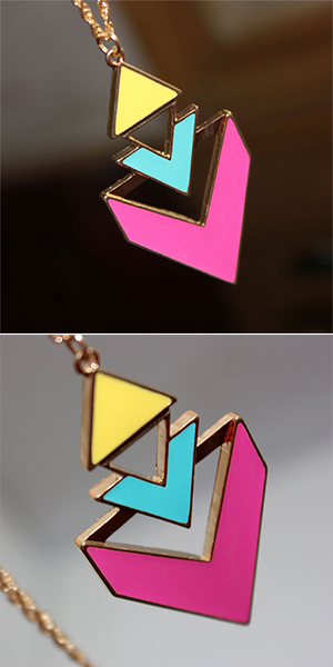 This pendant necklace is styled with contrast color design and triangle shaped patterns,