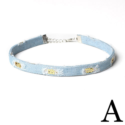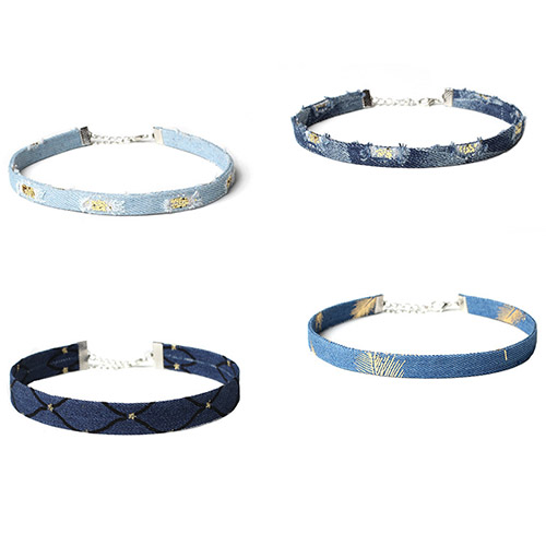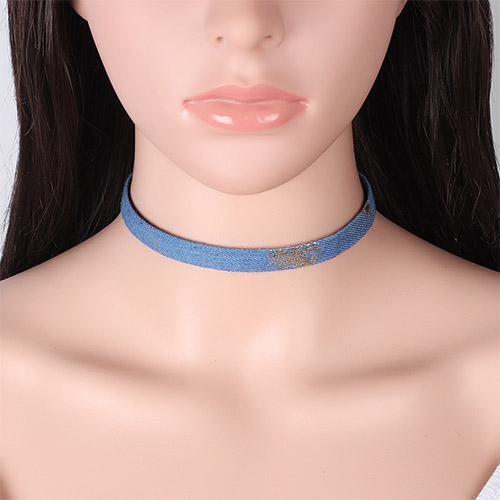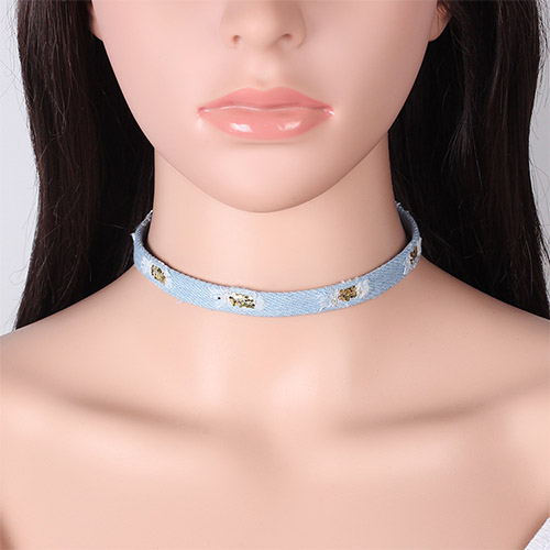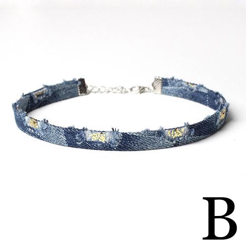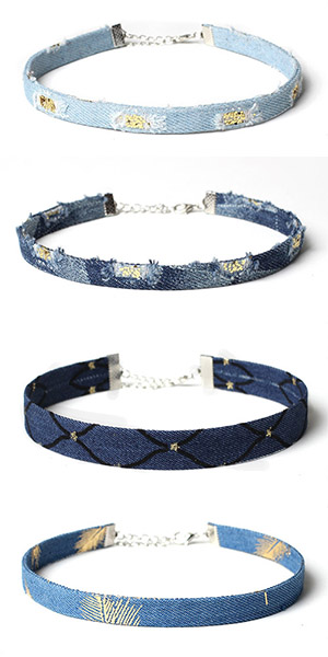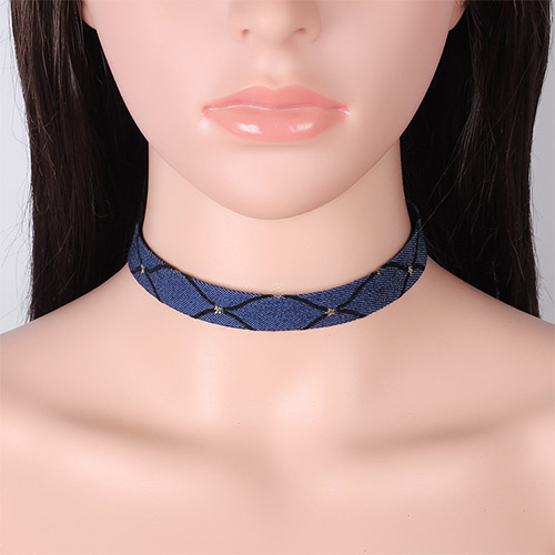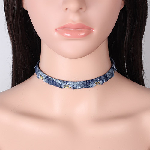 captivating look with this choker necklace. It is crafted from denim material that can make you