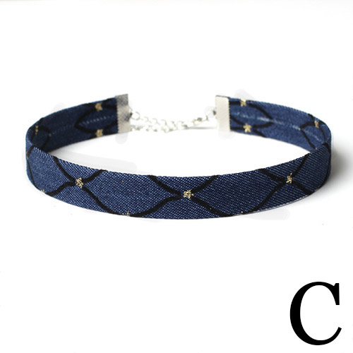 Fashion Punk Denim Flannelette Choker Necklace Set