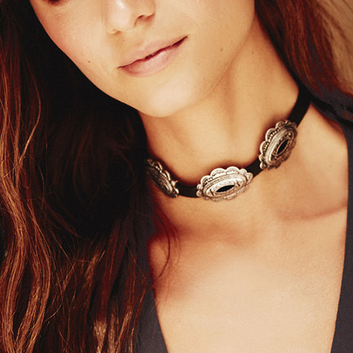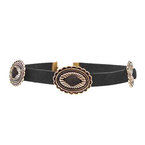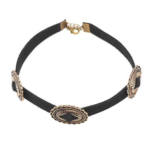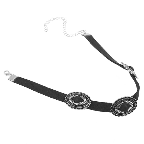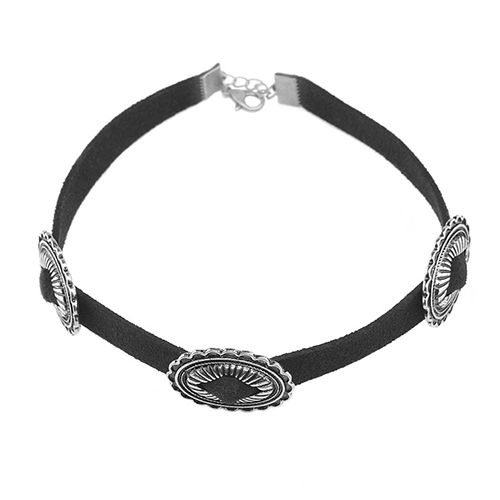 This choker necklace is decorated with geometric shaped design and carving patterns,