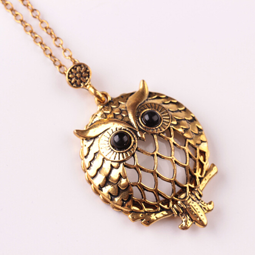 Fashion Retro Owl Shaped Glass Pendant Necklace