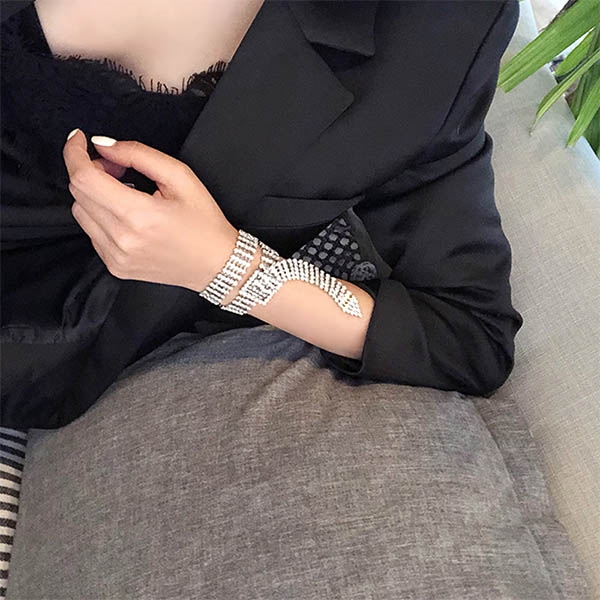 The rhinestone details make it look so shinning and sparkle. When wearing some off-shoulder or strapless