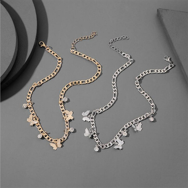 It features rhinestone and floral charm, thin chain and a lobster clasp.