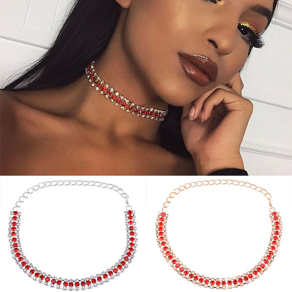 Your party look would be more charming and stunning when you wear this choker necklace. Inlaid with rhinestone details