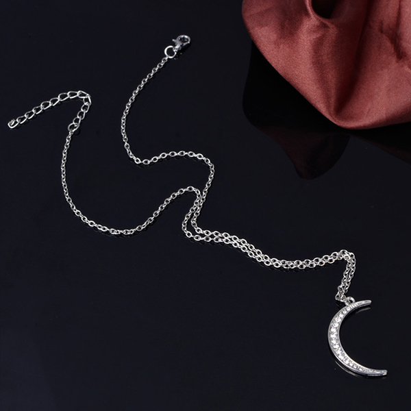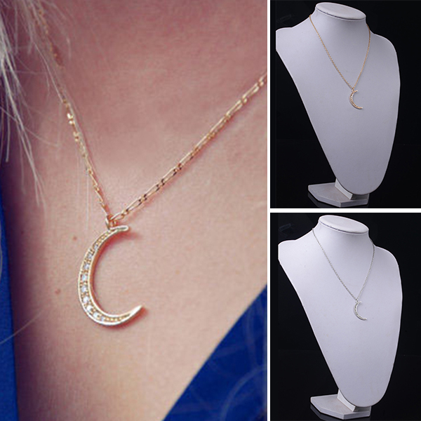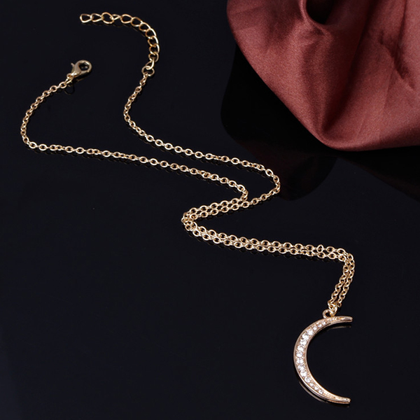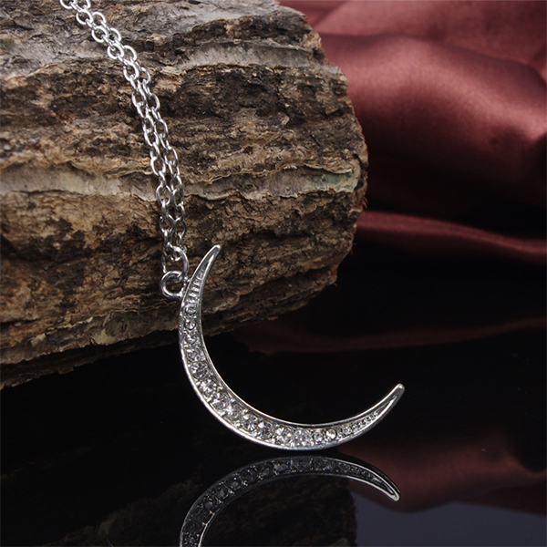 to people. So there are many people like moon. The inlaid rhinestone crescent shape pendant necklace features the
