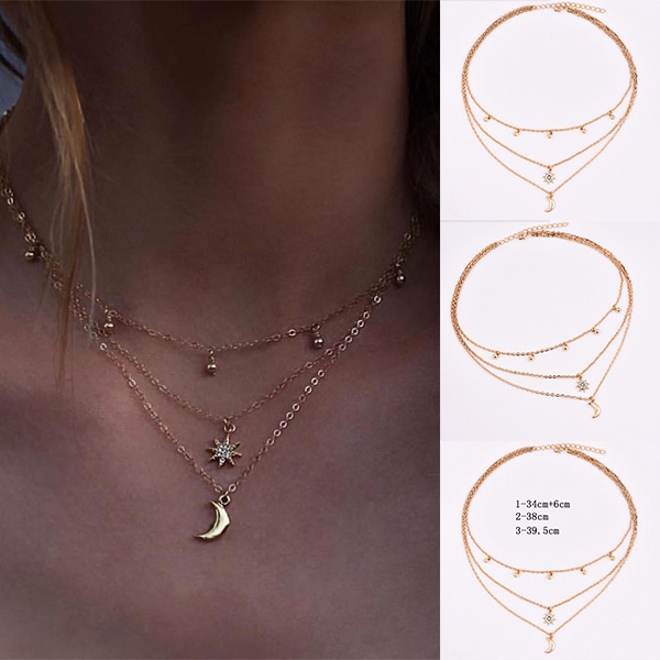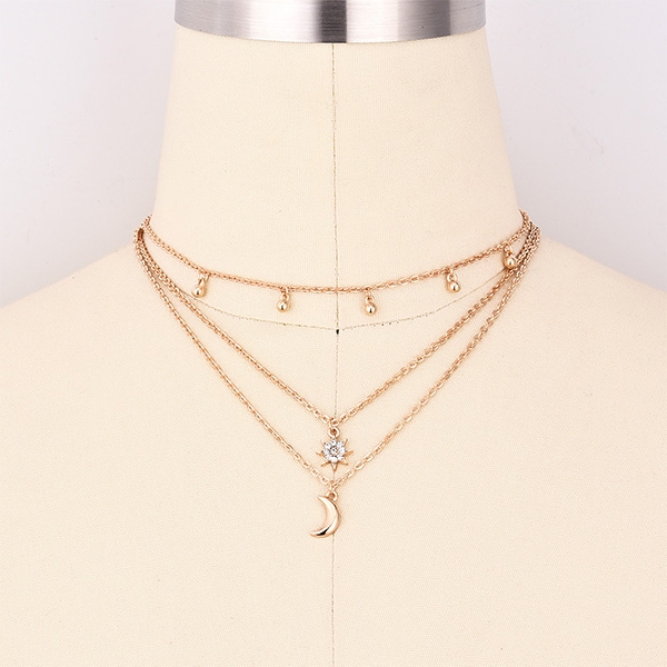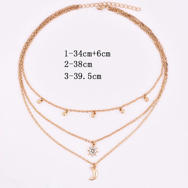 This three-layer style necklace comes with a classic yet stylish gold tone,decorated with star and