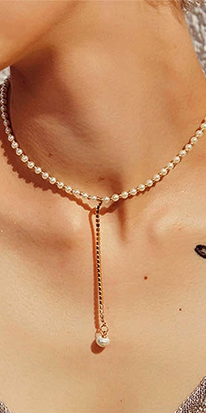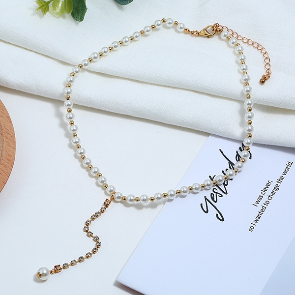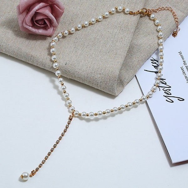 Fashion Rhinestone Inlaid Tassel Pendant Imitation Pearl Necklace