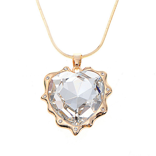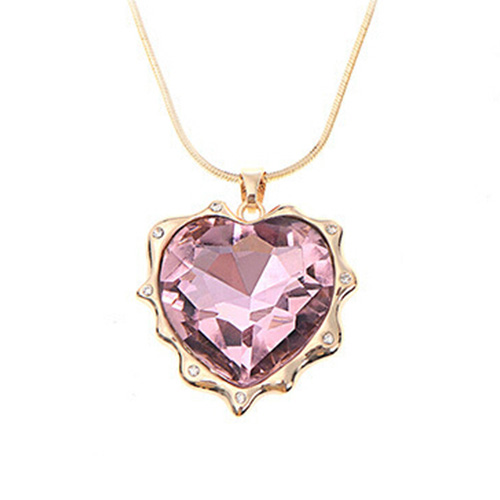 Fashion Rhinestone Peach Heart Pendant Necklace