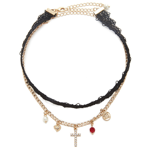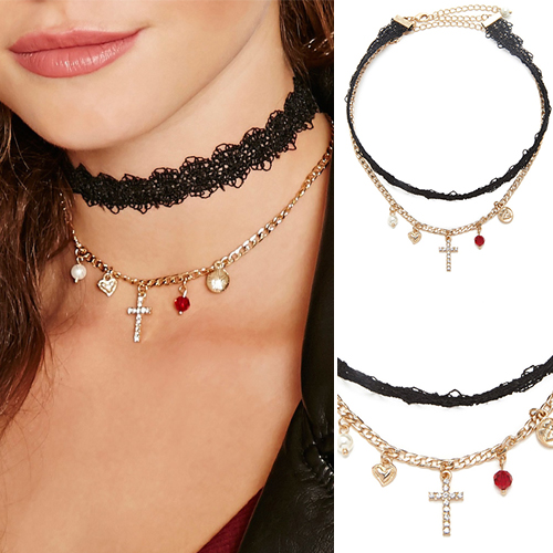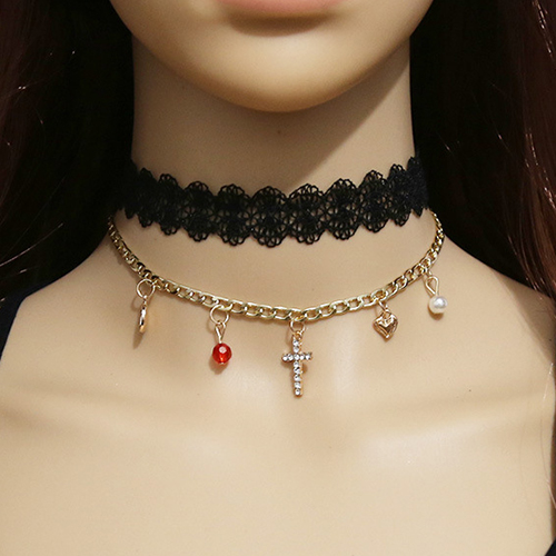 Then we suggest you adding this choker. Double-layer style,combination of lace and alloy elements. Its several