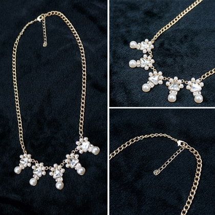 decorated with rhinestone and pearls,sparkle and eye-catching. This necklace