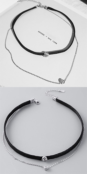 Double-layer design,with rhinestone pendant,simple but chic and unique. When wearing