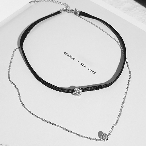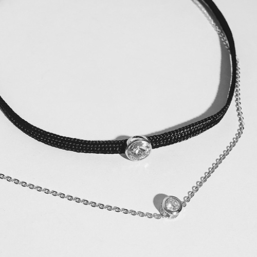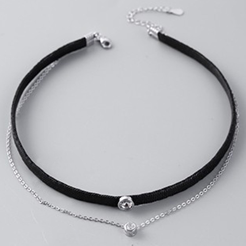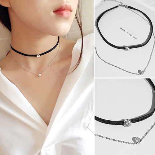 Fashion Rhinestone Pendant Silver Double-layer Necklace