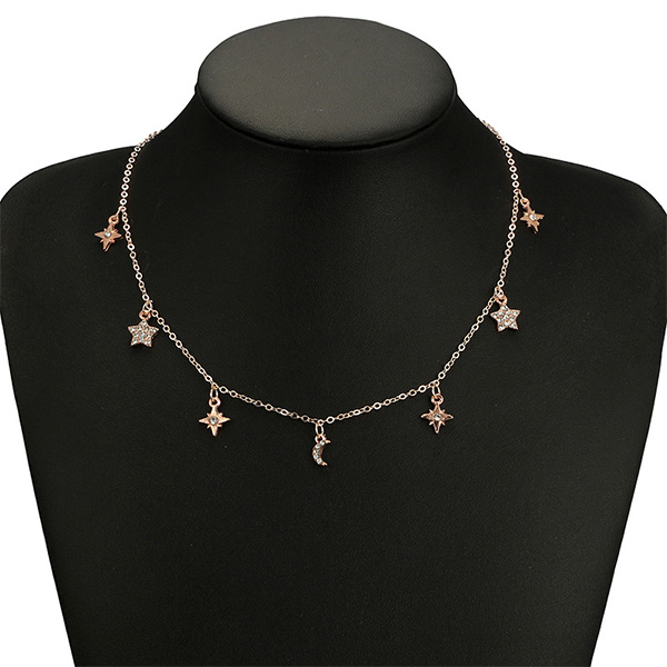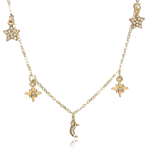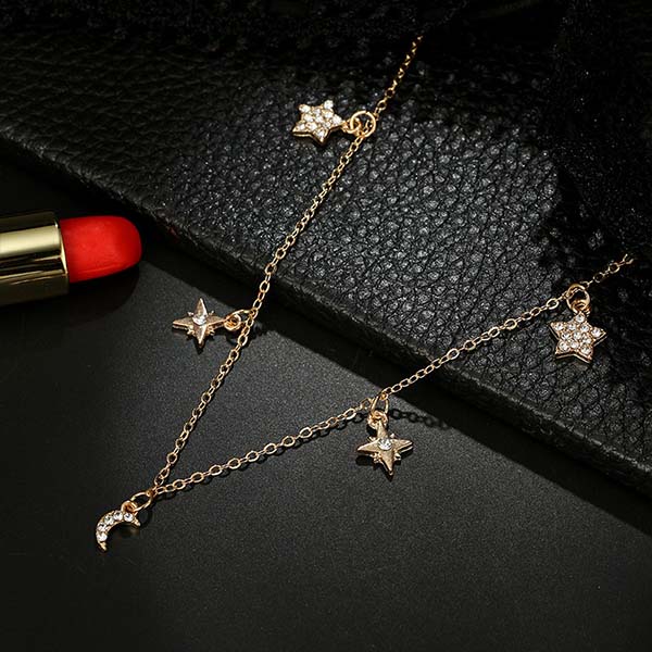 Fashion Rhinestone Star Crescent Pendant Necklace