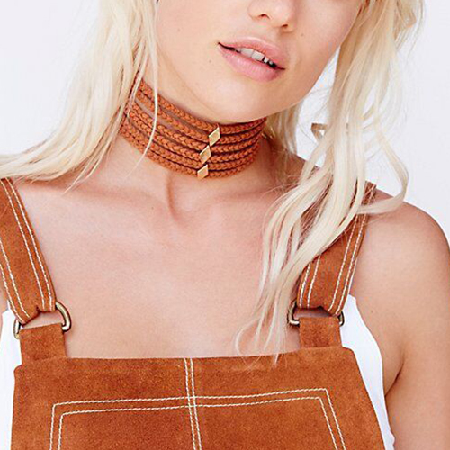 multilayer design, simple but stylish. The necklace is crafted from velvet and alloy material