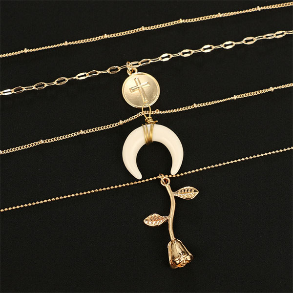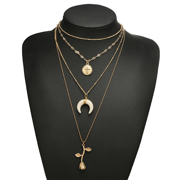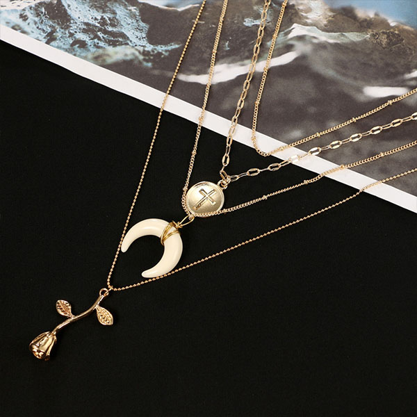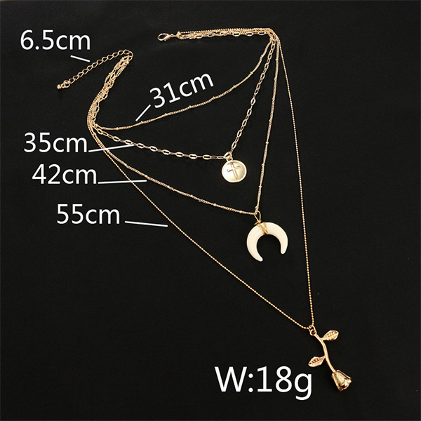 Fashion Rose Crescent Pendant Multi-layer Necklace