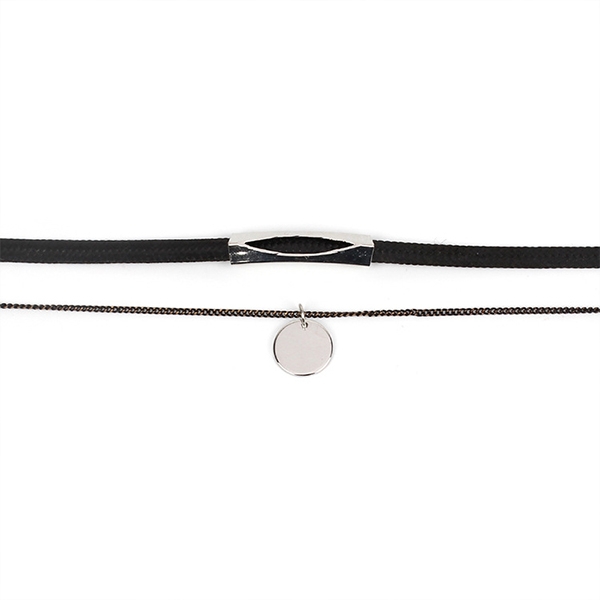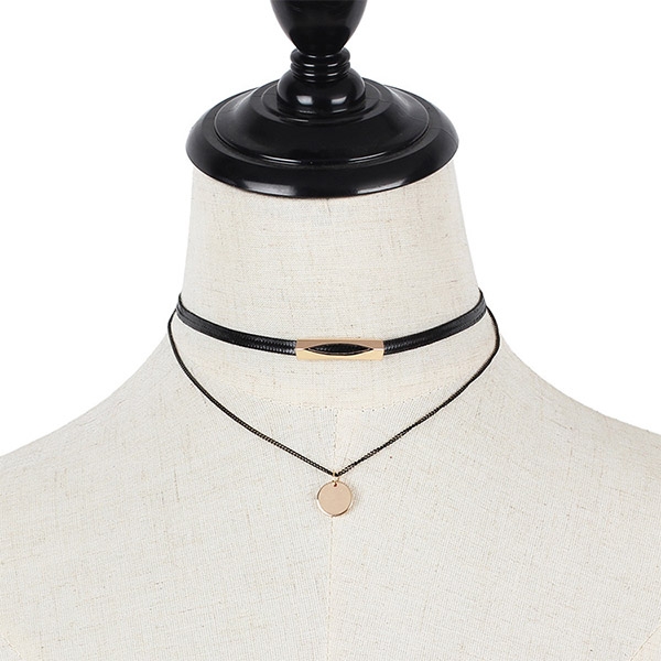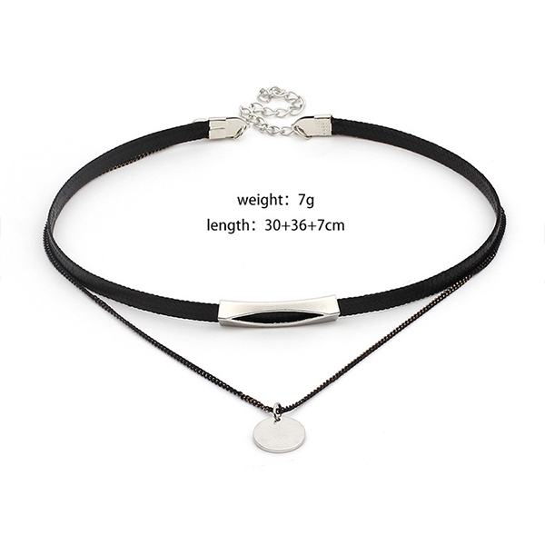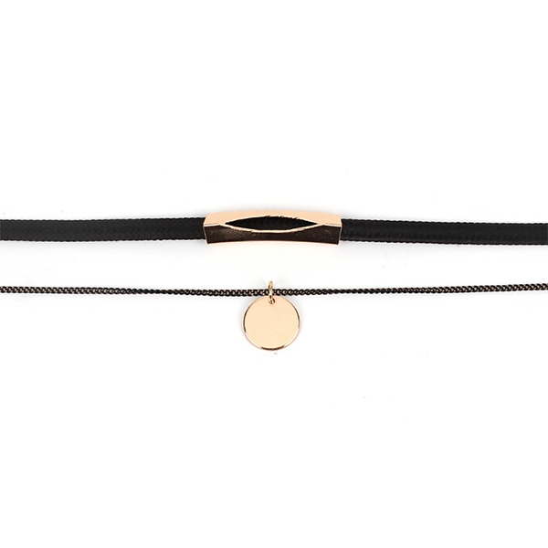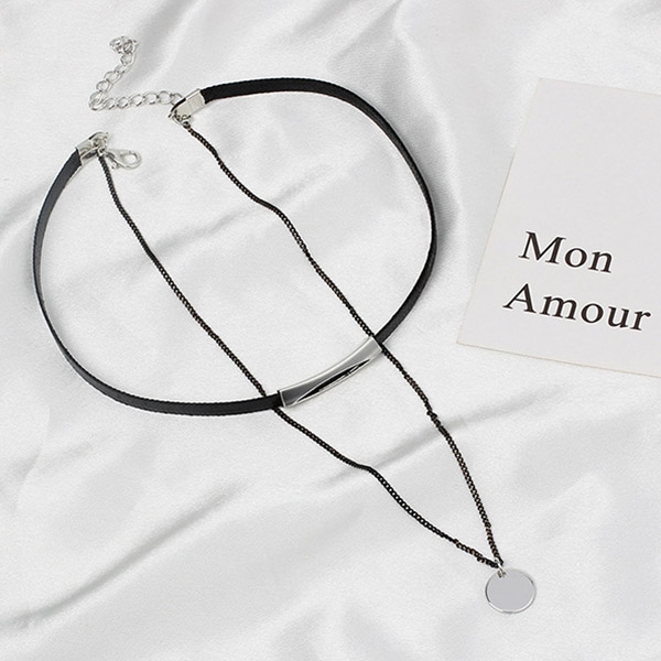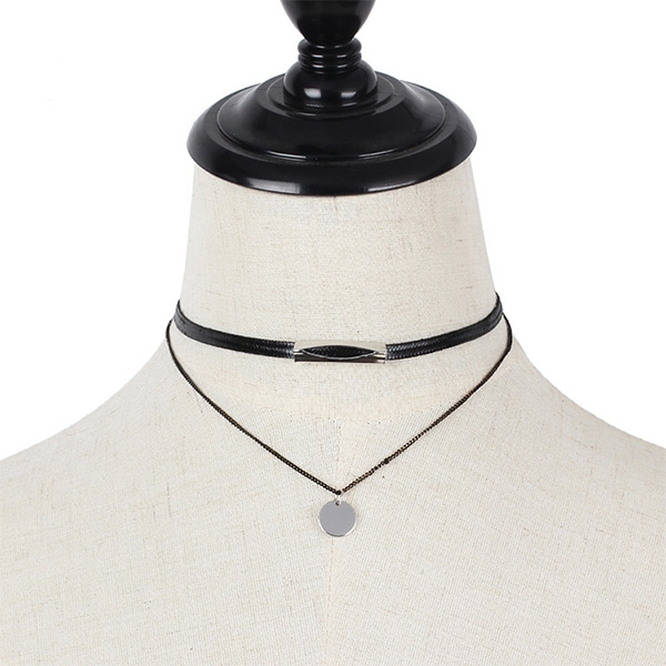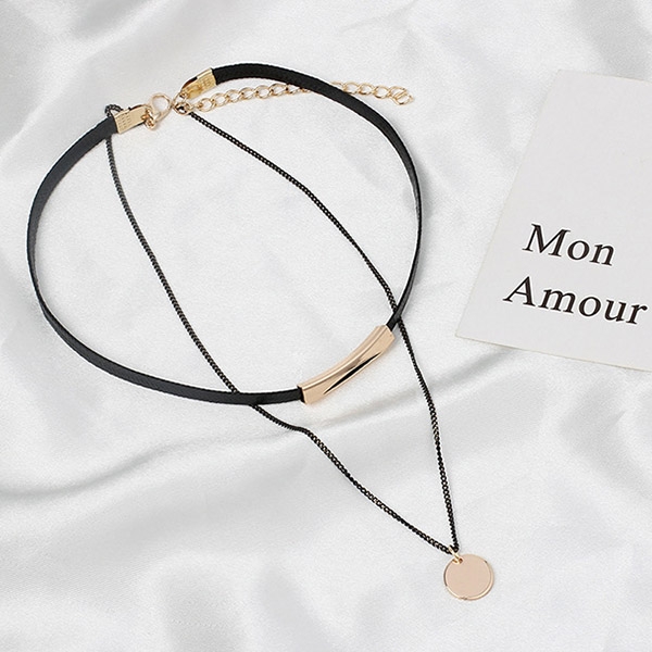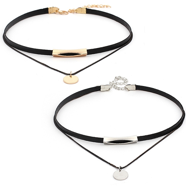This dual-layer choker necklace is decorated with a round sheet pendant,simple but chic.