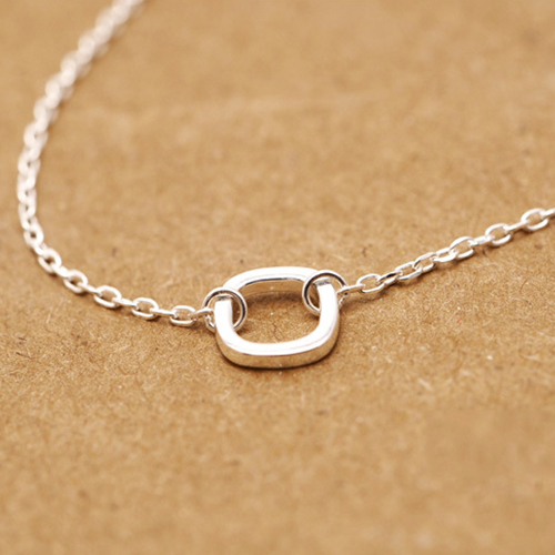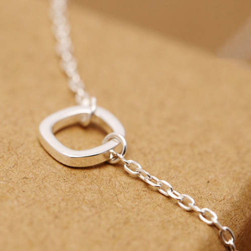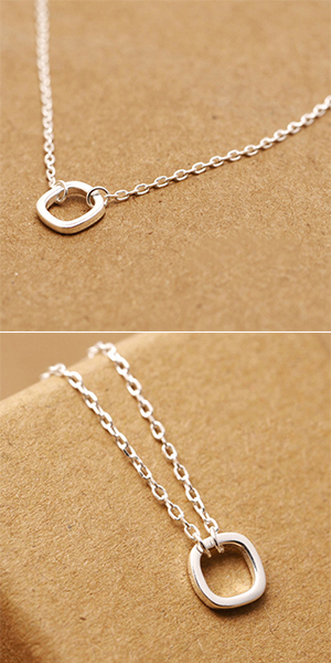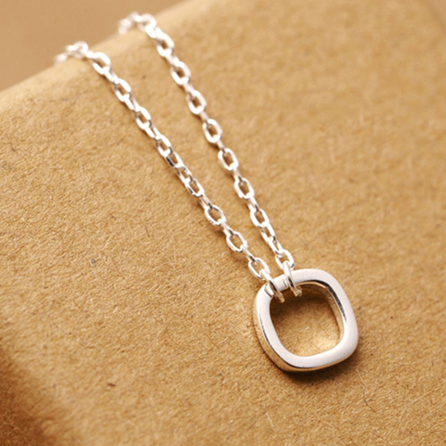 This silver-tone necklace is designed with a hollow out square pendant,simple yet