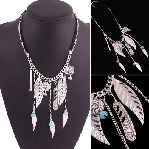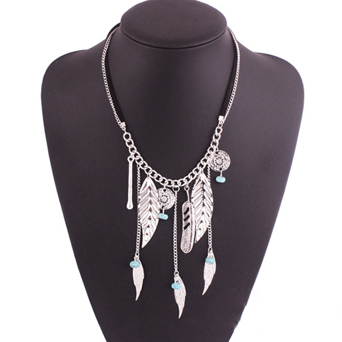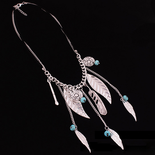 Fashion Silver-tone Leaf Tassel Pendant Necklace