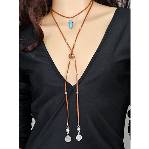 Fashion Simple All-match Coin Shaped Tassel Pendant Necklace