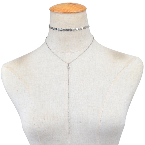 This choker necklace is decorated with rhinestone and sequin patterns, sparkle and gorgeous.