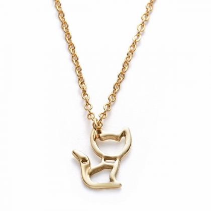 Fashion Solid Color Hollow Out Cat Alloy Pendant Necklace