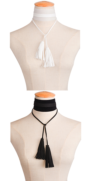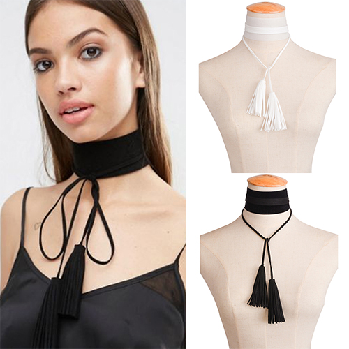 Fashion Solid Color Tassel Pendant Choker Necklace For Women