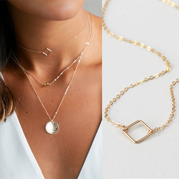 Three-layer style design makes this necklace look not so simple and dull. Decorated with a square