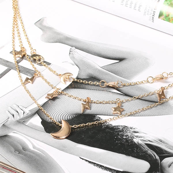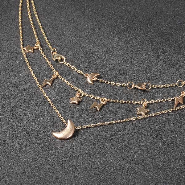 Fashion Star Crescent Pendant Multi-layer Necklace