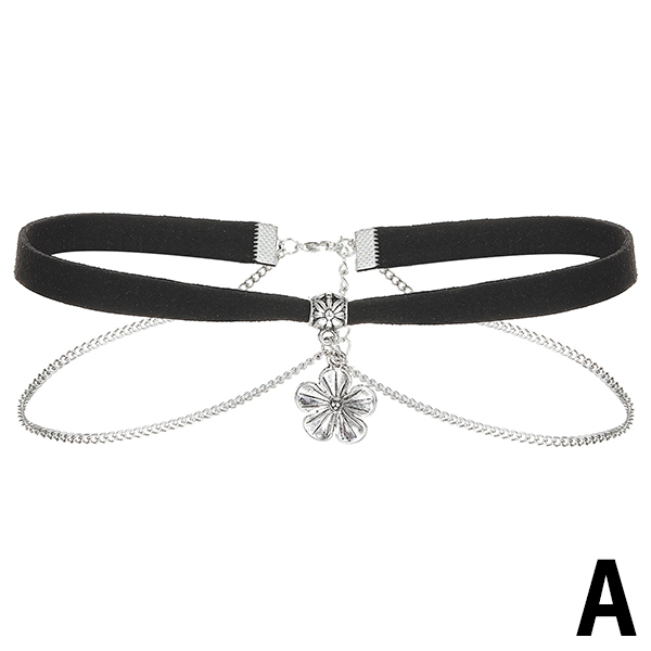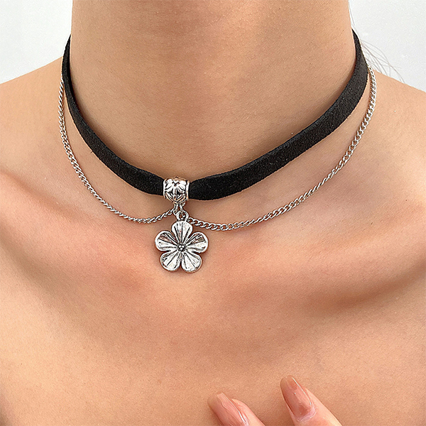 This piece of pendant necklace is crafted to a double-layer one. The first layer of this piece of pendant necklace is crafted with faux leather strap and there is a clover-shaped pendant on it while the second layer is crafted with alloy chain and there is also a clover-shaped pendant on it.