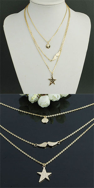 Fashion Style Multi-Layer Tree&Wing&Star Pendant Necklace