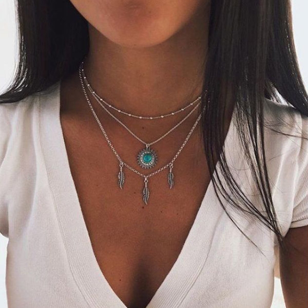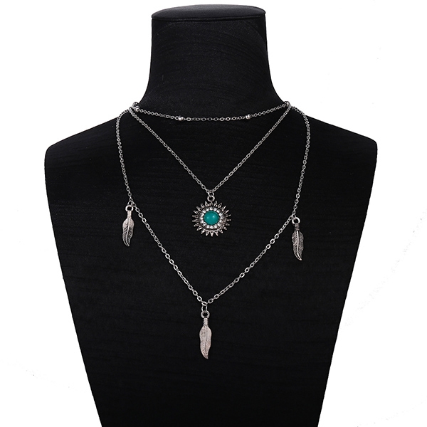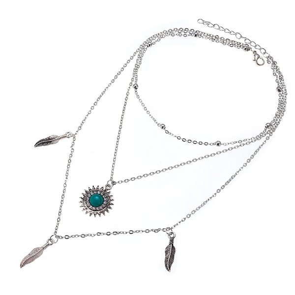 This necklace is designed with three-layer style,decorated with sun and feather pendant,which will make