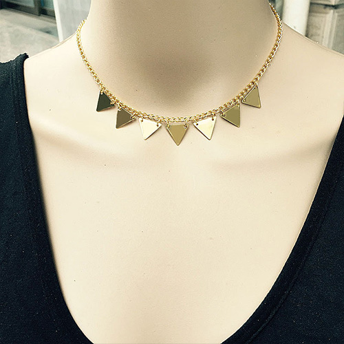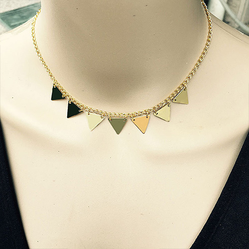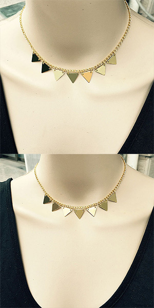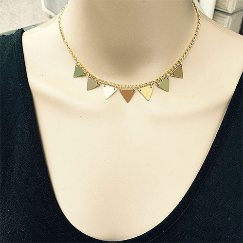 Gold/silver-tone necklace,with triangle metal sheets,chic and unique.