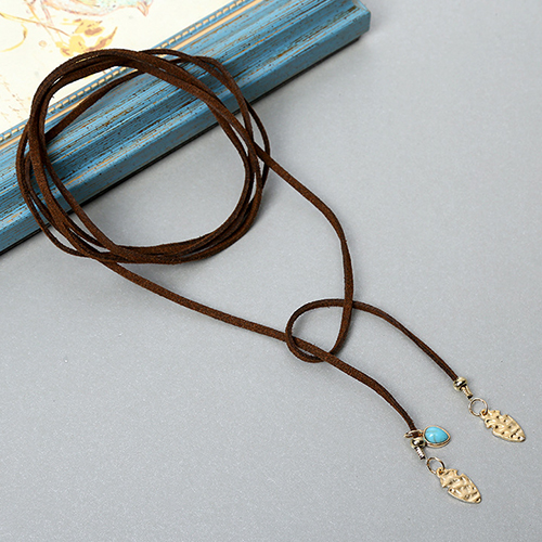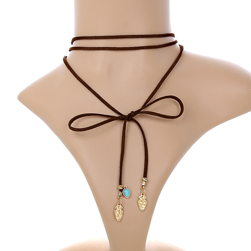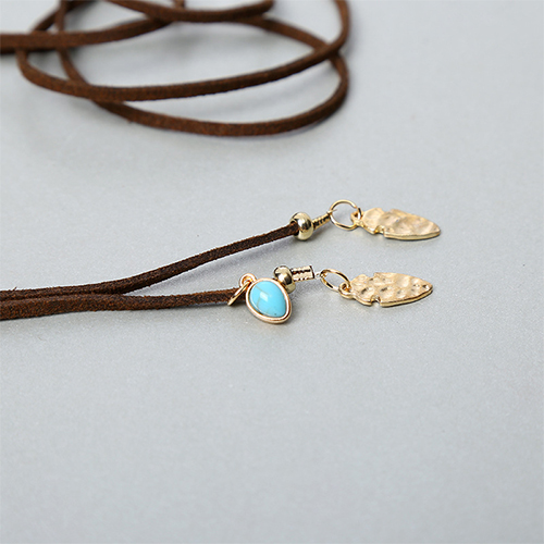 Fashion Turquoise Feather Pendant Choker Necklace