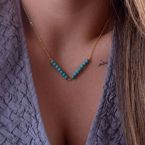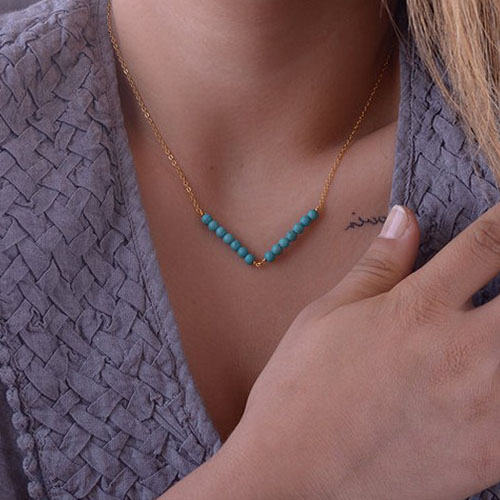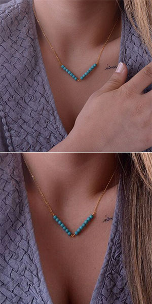 Gold-tone necklace with turquoise design,chic and stylish. A perfect gift for your female friends and yourself.
