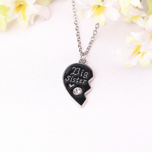 This a two-piece set for sisters. With 'Big Sister Little Sister' carved on the necklace, it is divided into