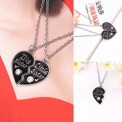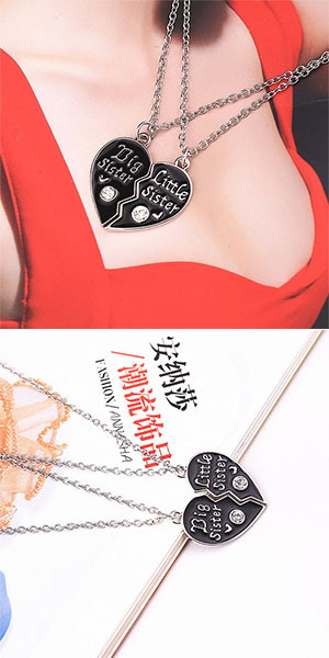 two broken heart-shaped necklaces. No matter you have a elder sister or a younger sister, you can