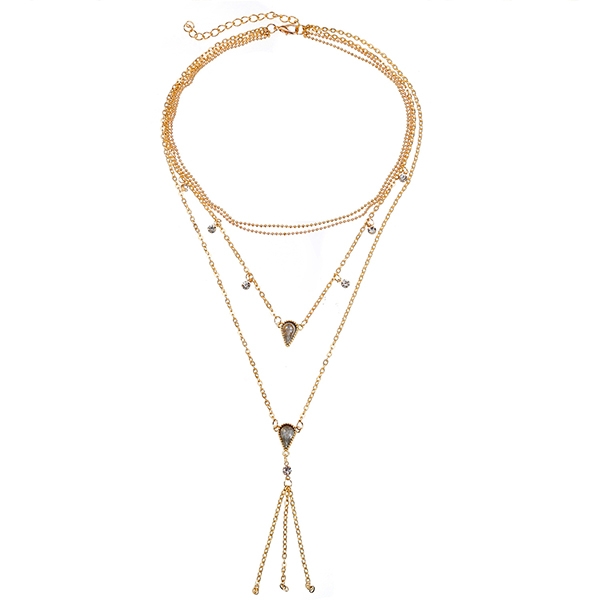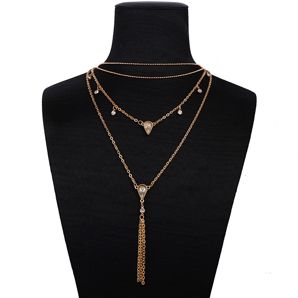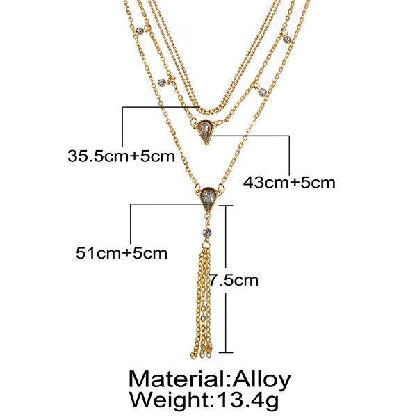 Fashion Water-drop Shaped Rhinestone Pendant Multi-layer Necklace