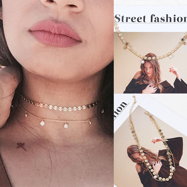 Make your simple ensemble look more charming with the help of this choker necklace. Double-layer style,decorated