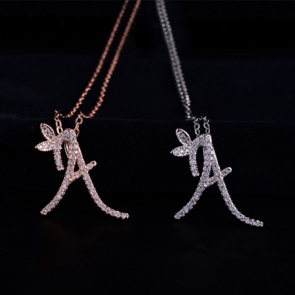 Fresh Style Rhinestone Inlaid Letter A Pendant Necklace