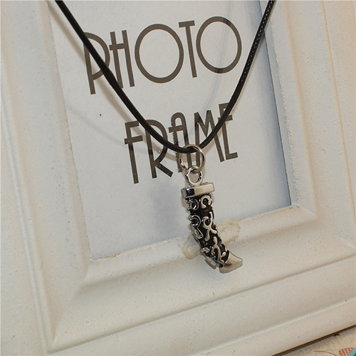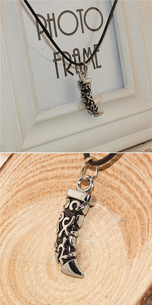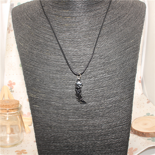 necklace features etched-skull pendant, faux leather cord with a lobster clasp.
