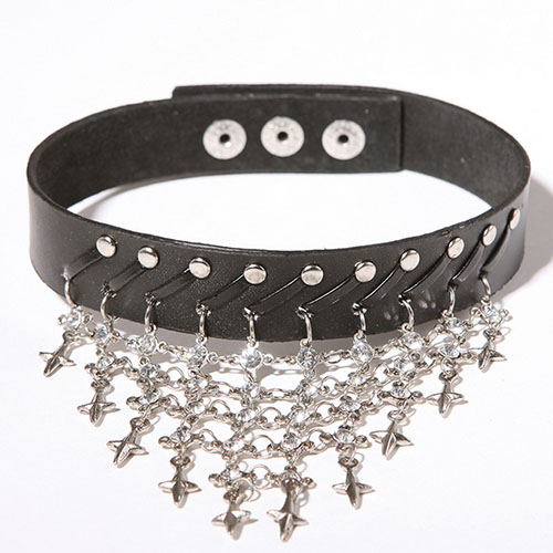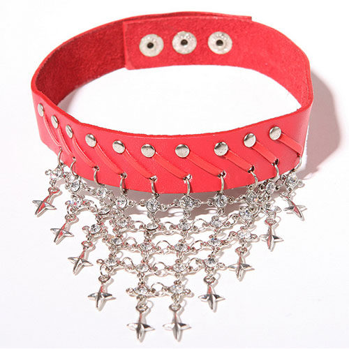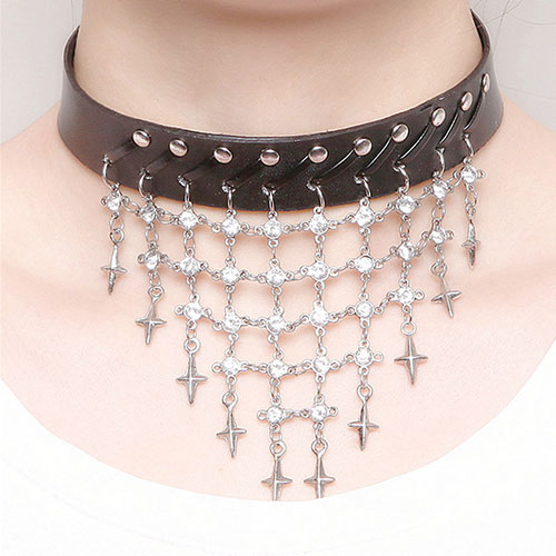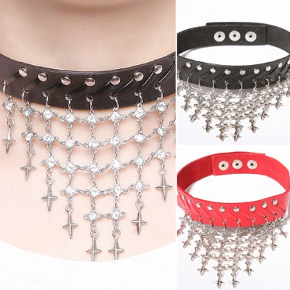 Punk Rhinestone Cross Rivet Leather Choker