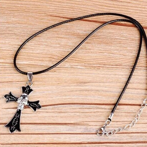 skull pendant, this necklace gets so punk style. This pendant necklace is styled with a faux