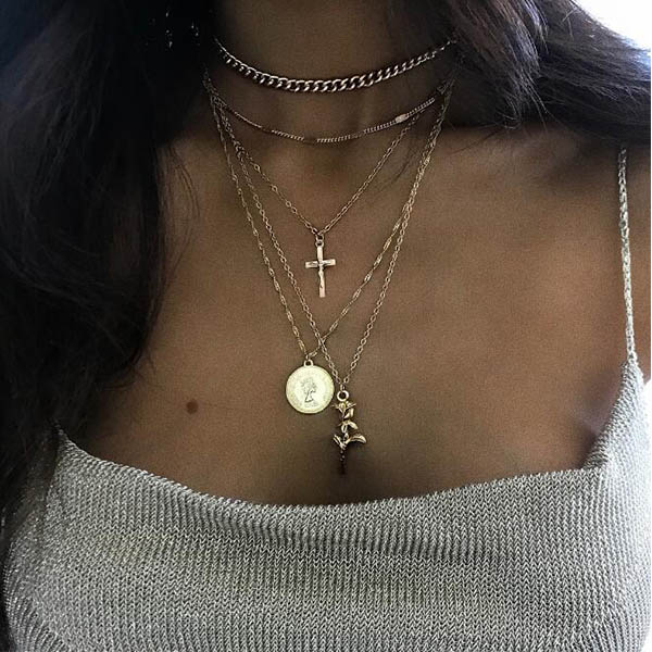 When wearing some deep v-neck and strapless outfits,adding this necklace would make you loom more