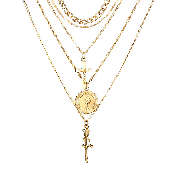 stunning! Multi-layer style design,decorated with cross and rose pendant,chic and unique.