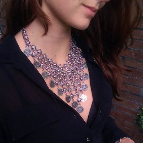 accentuate your beautiful neck. It is decorated with coins, lovely and elegant. You can pair it with